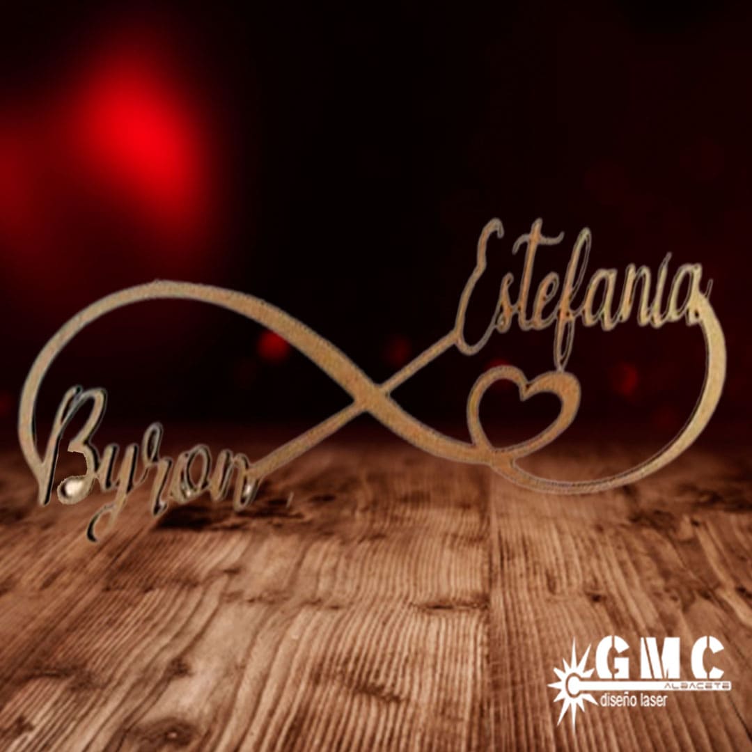 Si quieres sorprender a tu pareja, esta decoración de madera infinito con dos nombres será perfecta. Ponemos en ella vuestros nombres.