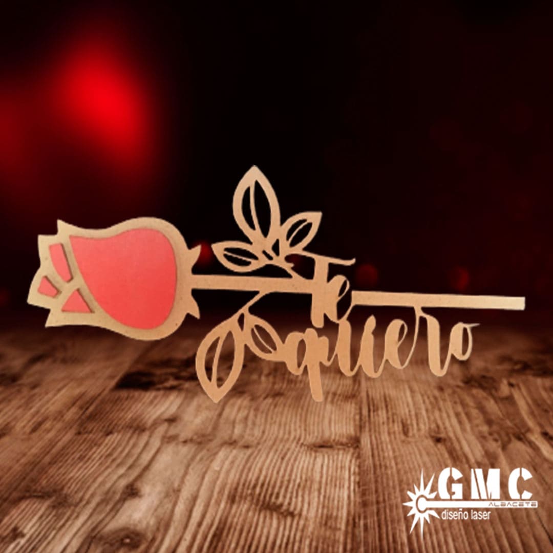 Si quieres sorprender a tu pareja, esta rosa personalizada de madera de 30 cm, con la palabra TE QUIERO será perfecta.